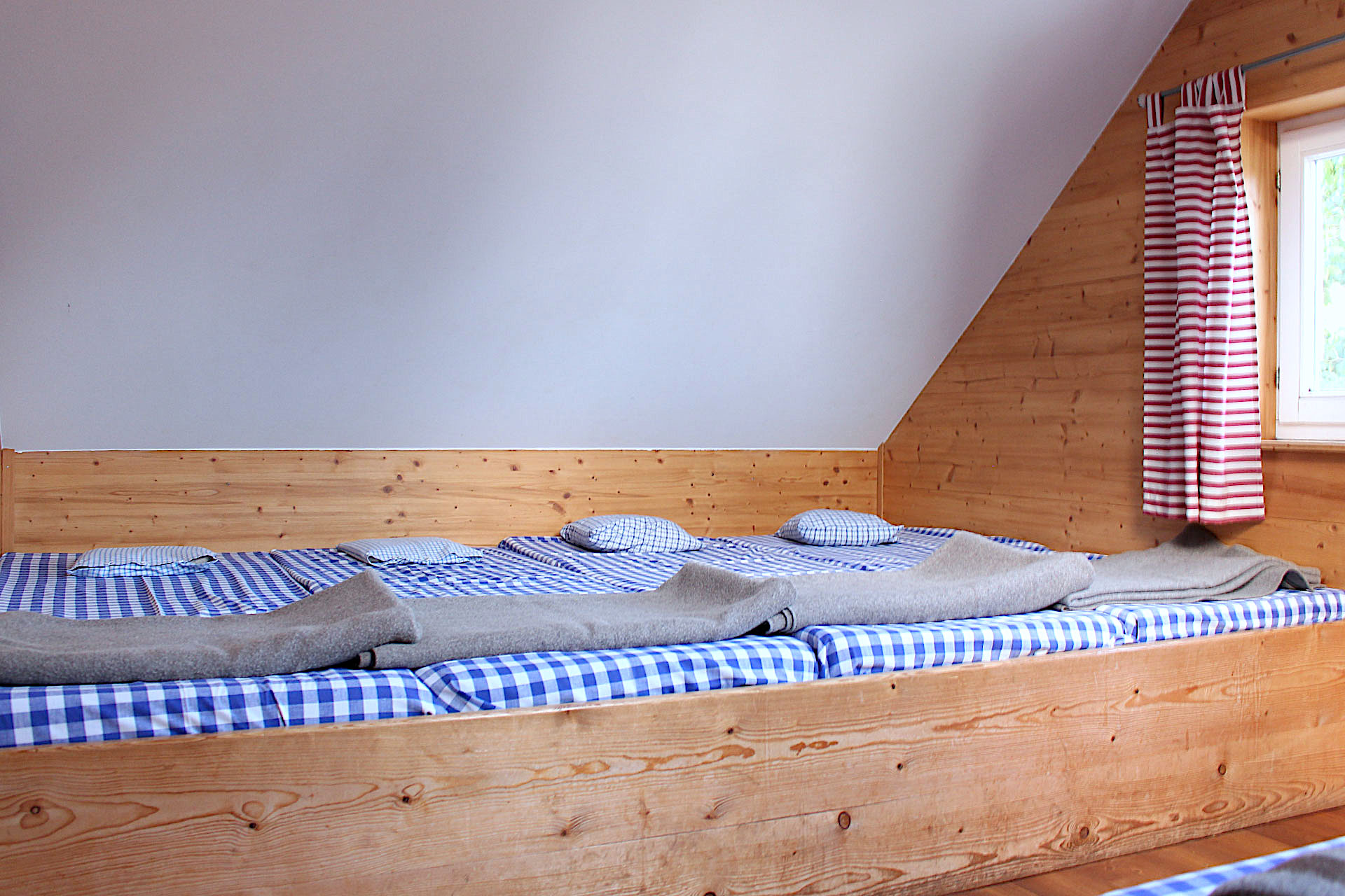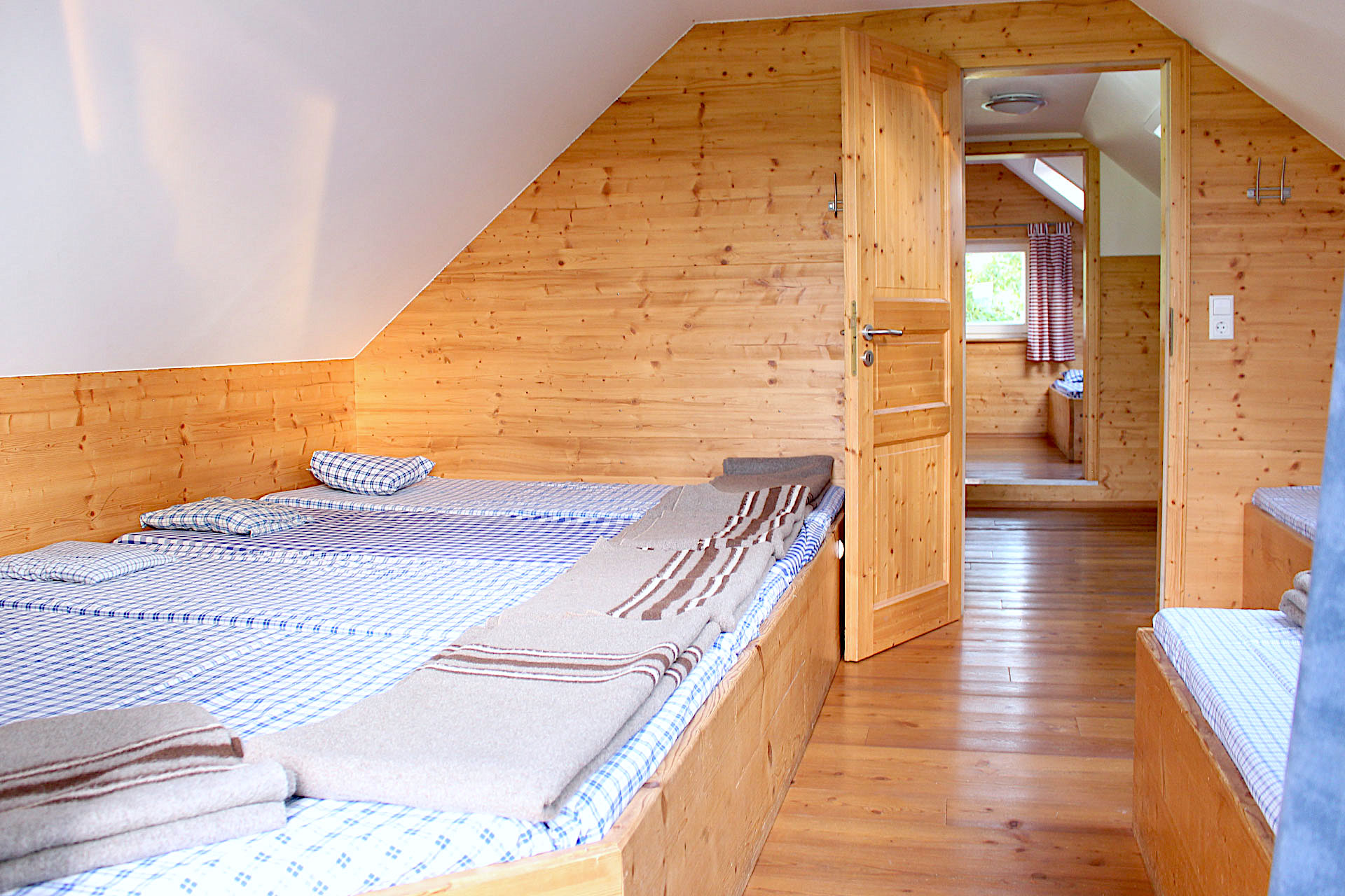 22 Betten in vier Schlafzimmern, ein Aufenthaltsraum